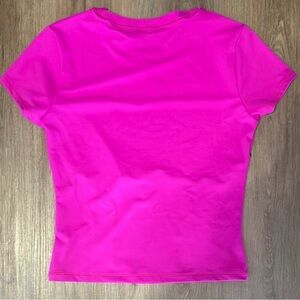 Bright orchid pink short sleeve tee from Victoria’s Secret “Sweat On Point” collection in the Bali color. Soft, smooth performance fabric with a flattering semi-fitted athletic cut and crew neckline. Lightweight, breathable, and perfect for workouts, walking, travel, or everyday athleisure.