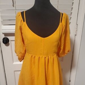 Chic and stylish mini dress. Features a vibrant yellowish orange hue. Perfect for casual outings. Size XS.