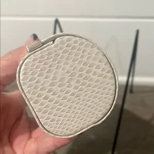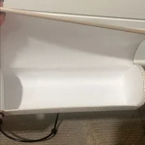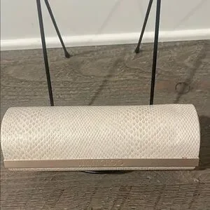 Keep your eyewear safe in style with this authentic Jimmy Choo eyeglasses / sunglasses case. Wrapped in a textured snakeskin-embossed finish in neutral taupe-grey tones, it’s accented with a polished gold bar engraved with JIMMY CHOO for a sleek designer touch.