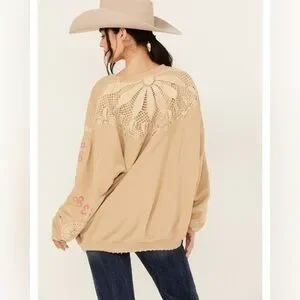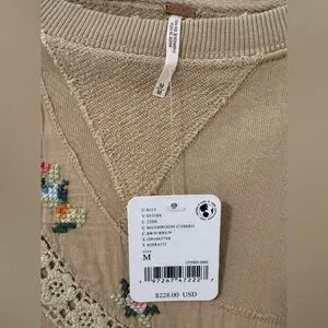 free people women’s floral crewneck sweatshirt - beige size medium nwt