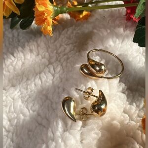 Teardrop Earrings and Ring Set 18 k Solid Gold
