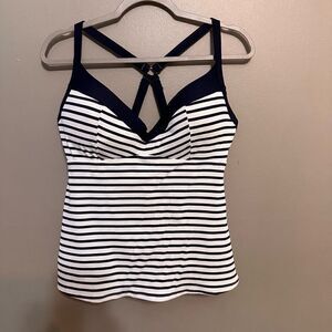Midway between a bikini and a one-piece swimsuit, this mid support tankini with molded underwire cups is perfect for all water sports.