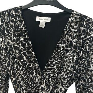 Calvin Klein Wrap Dress Black & White Abstract Print Midi
