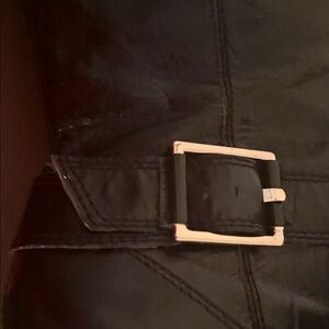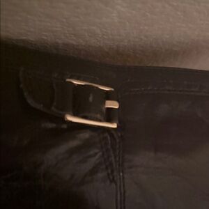 Sleek and stylish platform heeled boots by Bebe. Glossy black finish with buckle detail, and side zipper Perfect for elevating any outfit.
