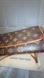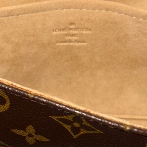 The crossover flap opens to an ivory microfiber interior with a patch pocket. Features elegant design and versatile use. No cracks on the canvas and leather shows some signs of wear as this is a vintage piece from 1999.