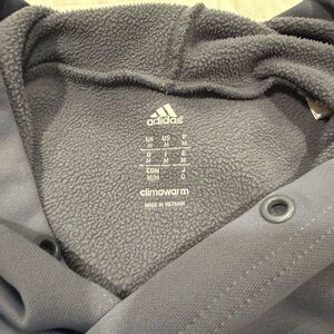 Comfortable adidas hoodie with Nebraska Football design. Dark gray color with bold lettering. Ideal for casual wear.