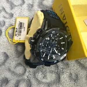 Bold Invicta watch with black and blue design. Features multiple dials and rugged style.
