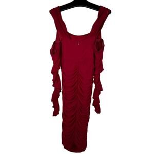Novan Lima Dress Burgundy Ruched Cold Shoulder Small NWT