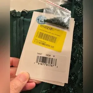 NWT Mac Duggal Forest Green Beaded Sequin Gown