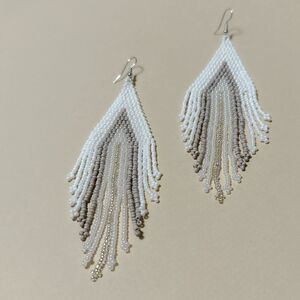 Bohemian beaded tassel drop dangle earrings in silver tone hardware
