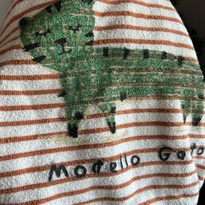 Stripped Sherpa lined coat w/ cat on the back
