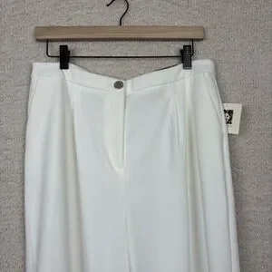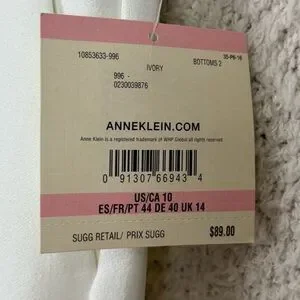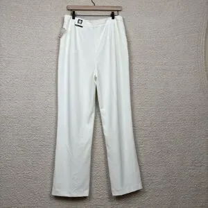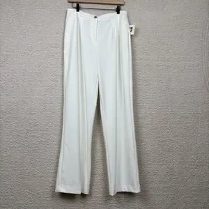 Anne Klein Pants Womens 10 Ivory High Rise Wide Leg Professional Office Career