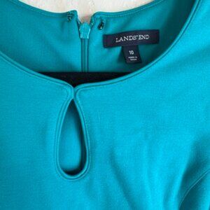 Lands’ End Teal Sleeveless Sheath Dress – Keyhole Neckline, Size 10