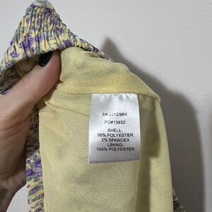 Color: Yellow with purple floral print