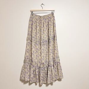 ENGLISH FACTORY Floral Tiered Midi Skirt Cottagecore Prairie Sz L Yellow Purple
