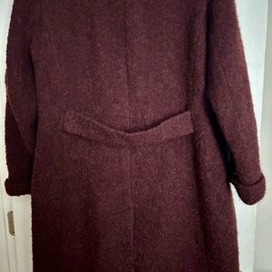 Talbots Vintage Burgundy Wine Boucle’ Long Elegant Wool Blend Overcoat Size 14