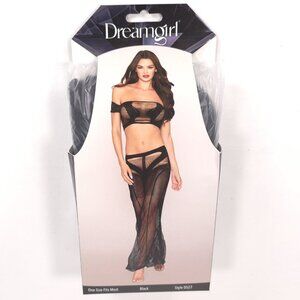 Dreamgirl Black Fishnet Lingerie Set Bralette & Maxi Skirt Two Piece One Size