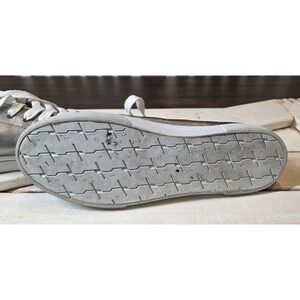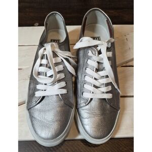 FRYE Gia Low Lace Sneakers Pewter Silver Metallic Leather Shoes sz 9.5 M FR41119
