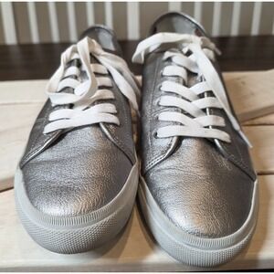 FRYE Gia Low Lace Sneakers Pewter Silver Metallic Leather Shoes sz 9.5 FR41119
