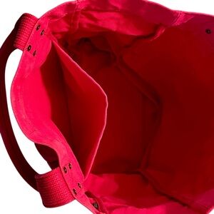 Bold red canvas bag with classic Rugby label and navy embroidered “R”Ideal for daily essentials or beach bag