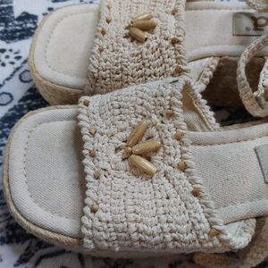 MUDD Vintage Y2K Crochet Beaded Bohemian Espadrille Sandals