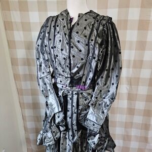 Keywords: Victorian, Edwardian, historical, costume, theatrical, polka dot, ruffles, corset, vintage dress, period costume, Gothic, Steampunk, antique reproduction