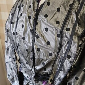 - made of black and silver polka dot silk taffeta