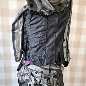 Antique Victorian 1870s Black Silver Silk Taffeta 2 Piece Day Dress Corset M