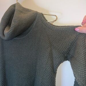 Hollister Olive Green Chunky Knit Cold Shoulder Turtleneck Sweater Size S