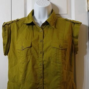 Worthington olive green sleeveless button down shirt blouse