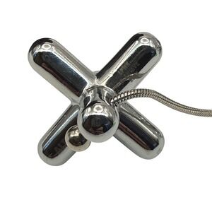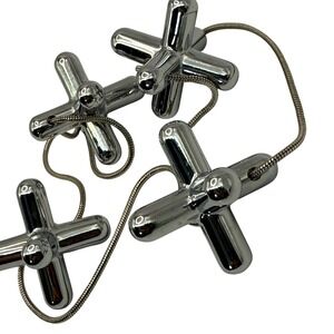 This iconic modular trivet features four chrome-plated zamak elements connected by flexible metal cords, allowing the shape to be adjusted to support various pot and pan sizes. A sculptural, modern design piece that works equally well as functional cookware or a display object.