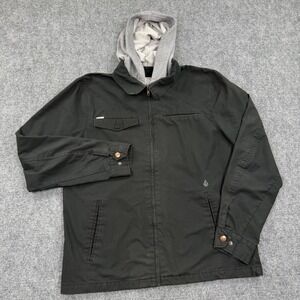 Volcom Mens Black Zip Up Hooded Jacket Workwear Utility Style Size XL