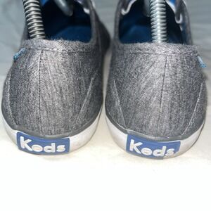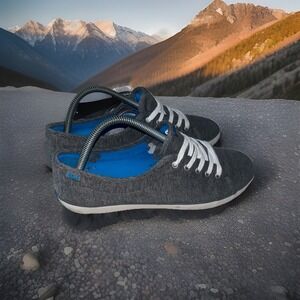 Ai- The product is a pair of Keds women's sneakers in charcoal and blue, size 10. These casual shoes are designed for comfort and are perfect for everyday wear. The sneakers feature a gray color with blue accents, a classic sneaker style, and are ideal for athletic activities. With a UK shoe size of 7.5 and EU shoe size of 41, these Keds sneakers are a versatile and stylish choice for women looking for a comfortable and trendy footwear option.