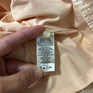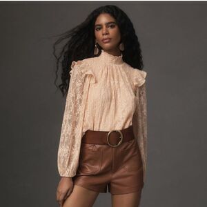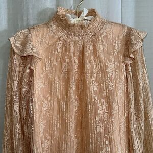 porridge x Anthro Peach Lace Mock Neck Statement Sleeves Pleated Blouse
