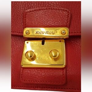 Elegant red crossbody bag by Miu Miu. Features a striking gold clasp. Ideal for versatile styling.