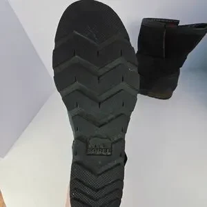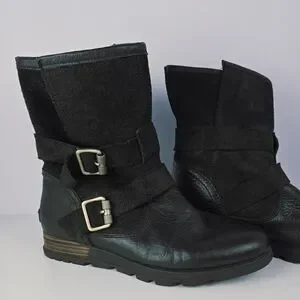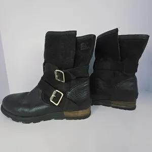 Sorel Black Leather Boots Womens 7 Plaid Lining Buckles