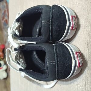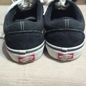 Vans Old Skool Pro skate shoes in a black and white colorway with suede & canvas