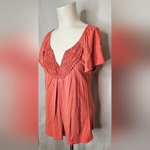 LOFT Ann Taylor Coral Crochet Lace Detail Short Flutter Sleeves Top Size S