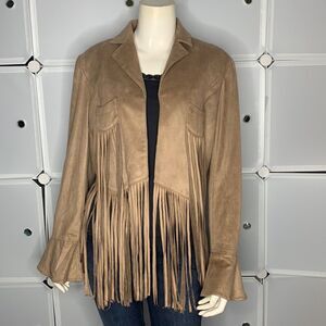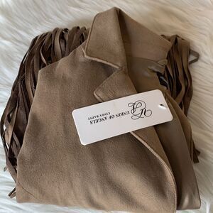 Union Of Angel Tan Fringe Faux Brushed Suede Shawna Jacket Size Medium