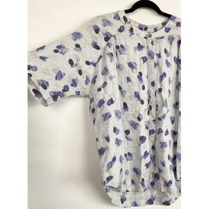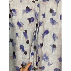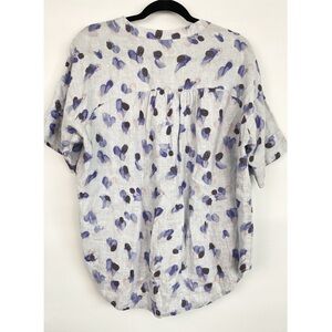 Poetry Women's Printed Button Down 100% Linen Blouse Top, Blue - Size 10