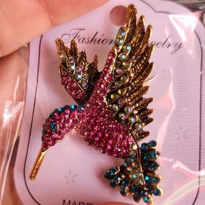 Beautiful Crystal Hummingbird Brooch Pin Full of Bling NIP