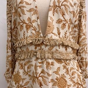Cleobella Victoria Faux Wrap Floral Brown Dress Size XL