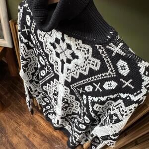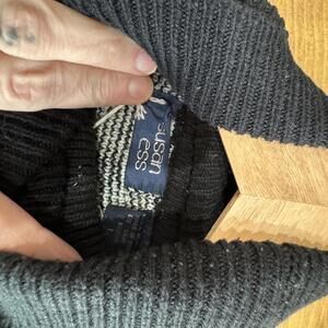 1970’s Susan Ess Turtleneck Sweater Black Mint Retro Vintage Large Geometric