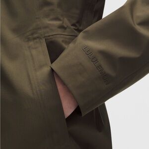 Streamlined classic fit leaves room for a light sweater. Pull the internal toggle to cinch the waist. Waterproof fabric is sealed at zippers and seams to prevent rain from seeping through. Color is Olive Brown. Size 8.