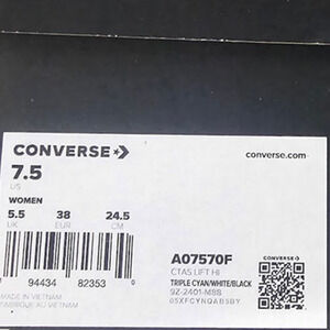 Step up your style game with these brand new Converse CTAS Lift Hi Tops! These stylish sneakers come in a vibrant cyan color and are a women's size 7.5. With their platform sole, they will give you a little extra height and a lot of extra style. Perfect for adding a pop of color to any outfit!