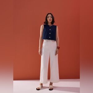 NWT Love, Bonito Relaxed Denim Round Neck Button Down Vest Top in Indigo