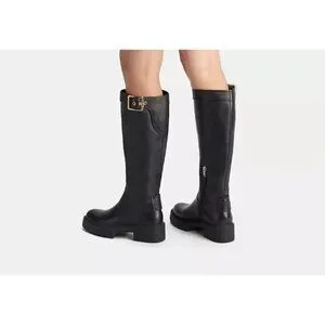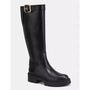 Elegant black boots with a stylish buckle. Perfect for any outfit.