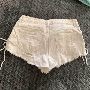 Fun Forever 21, white tie up Jean shorts, not bright white, worn several times, slightly dingy, no stains
