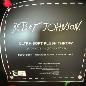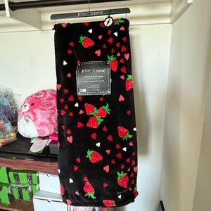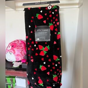 Betsey Johnson strawberry hearts plush throw blanket ultra soft