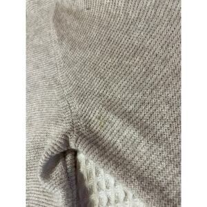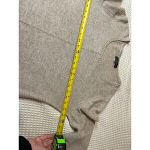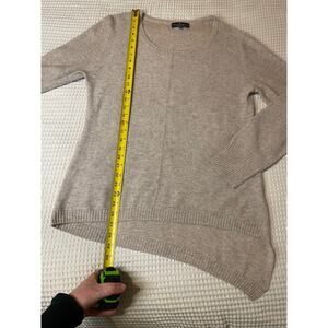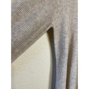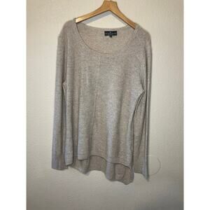 Features: Beautiful 100% cashmere. Knit with semi ribbed texture. Asymmetrical bottom hem. Heather gray/ beige color. Wider neckline.